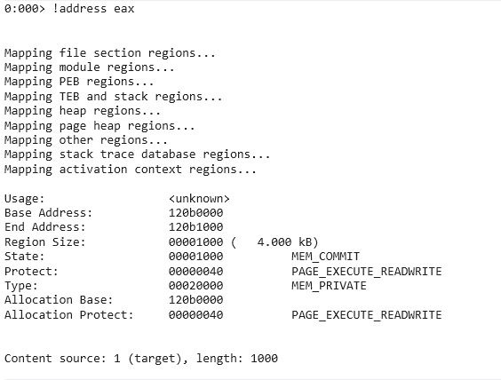 protect가 PAGE_EXECUTE_READWRITE 인 것을 알 수 있다.