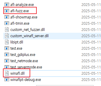 "C:\winafl\build64\bin\Release" 경로에 afl-fuzz.exe 와 winafl.dll 이 존재하는지 확인을 합니다.