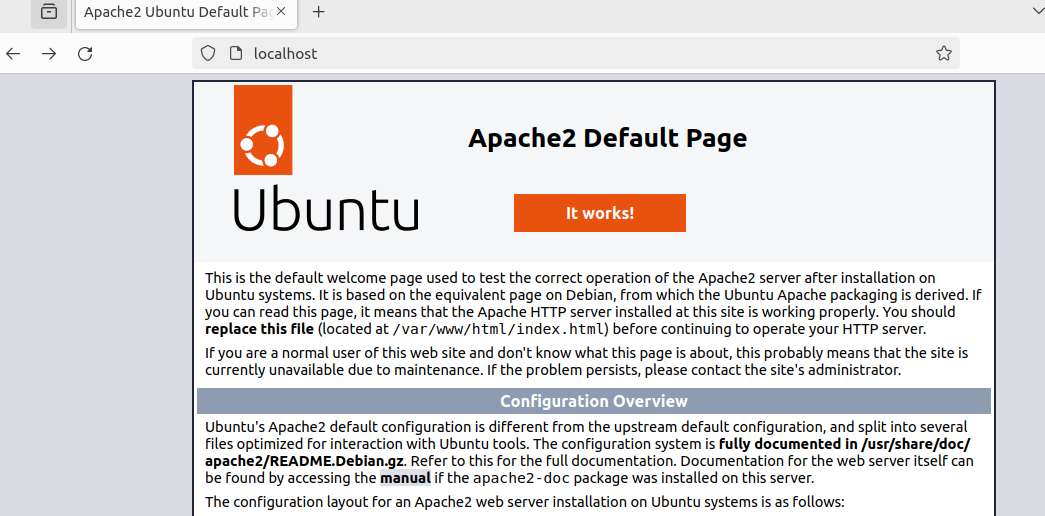 이제 Ubuntu에서 firefox를 실행하고, localhost에 접속을 합니다.