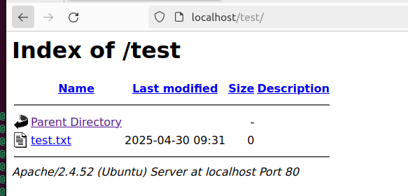 현재 웹 사이트의 경로에 test디렉터리를 생성하고, 해당 디렉터리의 안에 있는 파일들을 볼 수 있습니다.