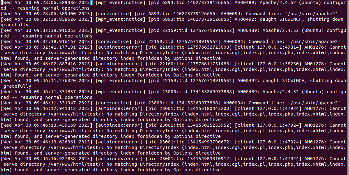 Ubuntu에서는 /var/log/apache2/error.log에서 에러 로그를 확인할 수 있습니다.