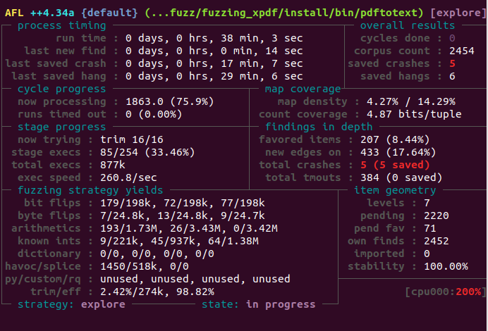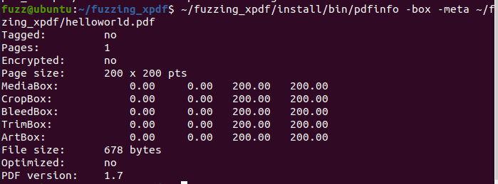 afl-fuzz -i $HOME/fuzzing_xpdf/pdf_examples/ -o $HOME/fuzzing_xpdf/out/ -s 123 -- $HOME/fuzzing_xpdf/install/bin/pdftotext @@ $HOME/fuzzing_xpdf/output